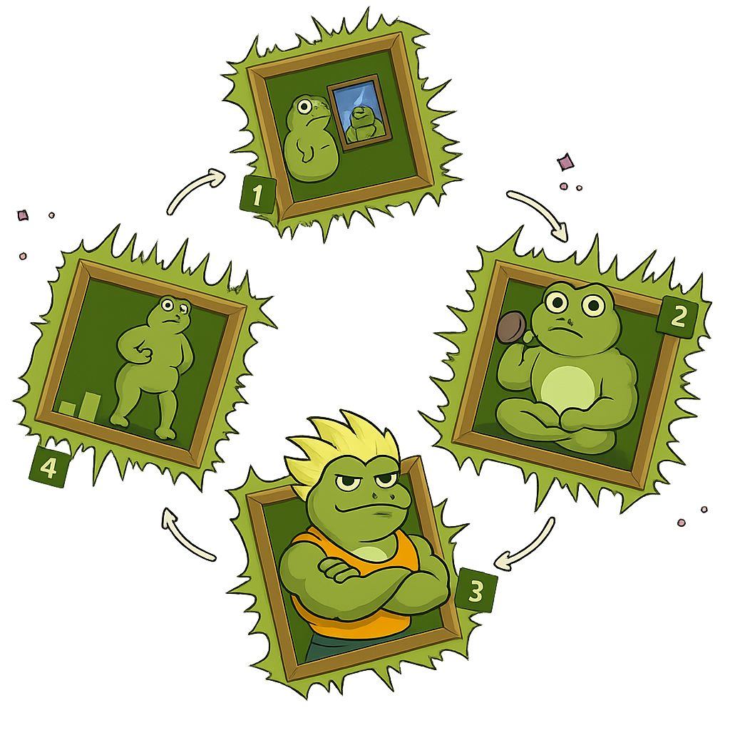 Frogs sing when it rains—and in Japan, rain means rice, and rice means life. The frog is celebrated as a harbinger of abundance, calling in the rain to nourish the fields and feed the nation. Just like the frog calls in the rain, GERU calls in the gains